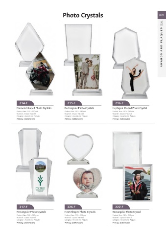 Diamond shaped Photo Crystals Rectangular Photo Crystals Heptagon Shaped Photo Crystal