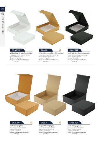 White Box with front flap opening  Recycled Box with front flap opening  Black Box with front flap opening