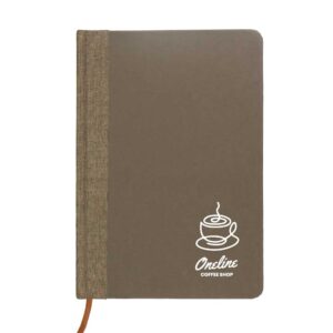 - A5 Size Hard Cover Notebooks in coffee fiber material with matching coffee color textured linen design