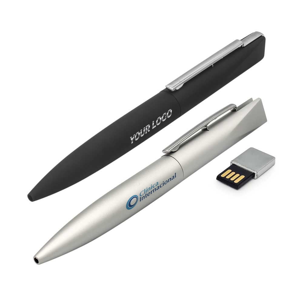 Ball pens with USB offers you a 2-in-1 incredible combination of two largely used everyday items. The metallic configuration of this metal pen with USB along with a rubber texture barrel is excellent as a promotional item. With different printing techniques, you can customize the USB pen with the logo of your corporation or business.