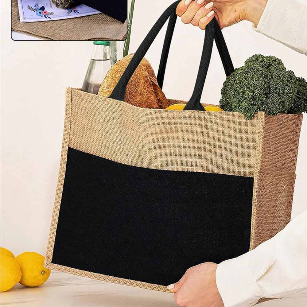 Jute Shopping Bag with Black Cotton Pocket and Handle – Ramadan Gifts