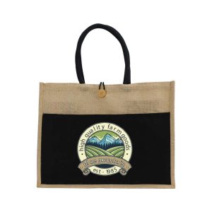 Jute Bag with Black Cotton Pocket and Handle