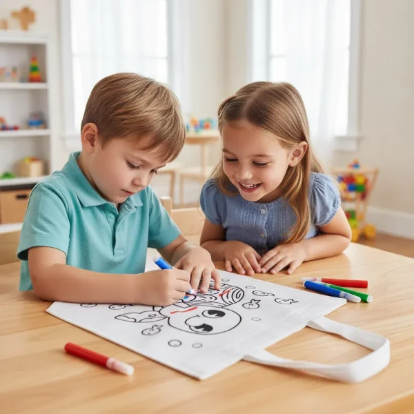 Engage creativity and eco-consciousness with our Mini Non-woven Bags featuring a fun turtle imprint design and 4 colorful markers. Made from durable 100 GSM non-woven fabric, these reusable bags are lightweight, washable, and perfect for kids’ activities, giveaways, and eco-friendly promotions. The included markers in red, green, orange, and blue allow users to color and personalize their own bags, making them a unique and interactive promotional item. With sturdy handles and a compact size, these mini bags are ideal for events, schools, and awareness campaigns promoting sustainability and creativity.
