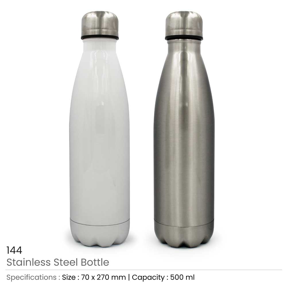 The bottles are crafted from original stainless steel material making them durable and long-lasting. The stainless steel protects your water, tea, and coffee from harmful UV rays and overheating. It also helps to keep your beverages like tea and coffee to remain hot. These stainless steel bottles are the right choice for thermal bottles. It has a strong rubberized lid for no leakage of water. Besides, the stainless steel material the bottle is lightweight and easy to carry. The total capacity of these personalized water bottles is 500 ml. It has a slim and compact structure so it can easily fit your bags. Customized bottles that are widely used also will help your brand attract people’s attention.